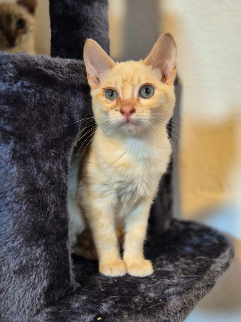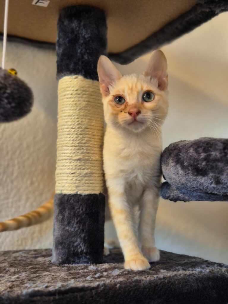 Andy beobachtet neue Situationen zunächst aufmerksam, bevor er sich mutig ins Geschehen stürzt – oder direkt auf den Schoß seiner Menschen klettert. Er ist neugierig, verschmust und offen, sobald er Vertrauen gefasst hat. Momentan benötigt sein Auge noch etwas Pflege, er bekommt drei Mal täglich Augensalbe. Kinder im Haushalt sind für ihn kein Problem, solange sie ihm etwas Raum zum Ankommen lassen.
