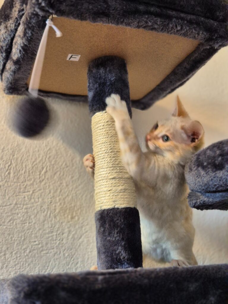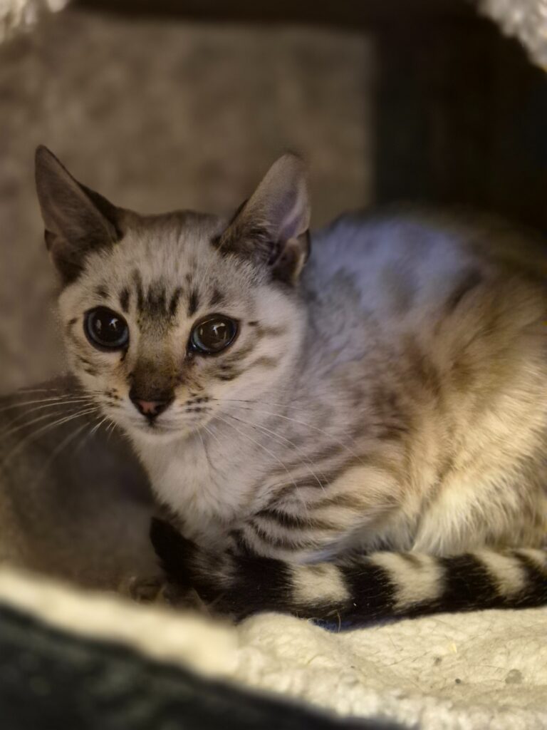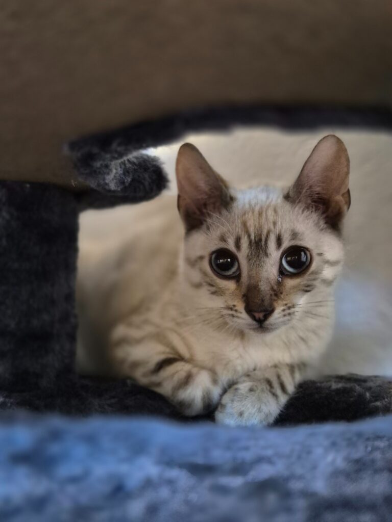 Archie hingegen ist der ruhigere der beiden. Mit seinen großen, ausdrucksstarken Augen beobachtet er alles lieber aus sicherer Entfernung. Auf seiner Pflegestelle zeigt er sich vorsichtig, kommt aber nach einiger Zeit neugierig aus seiner Höhle, um zu fressen – auch wenn Menschen im Raum sind. Mit Geduld und Verständnis wird aus ihm ganz sicher ein liebevoller Wegbegleiter.