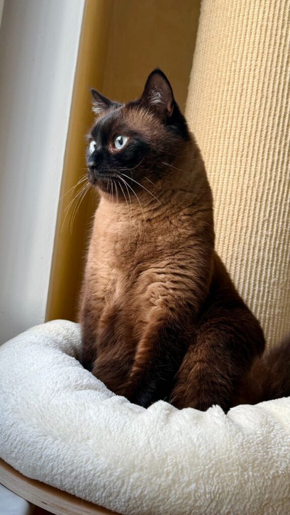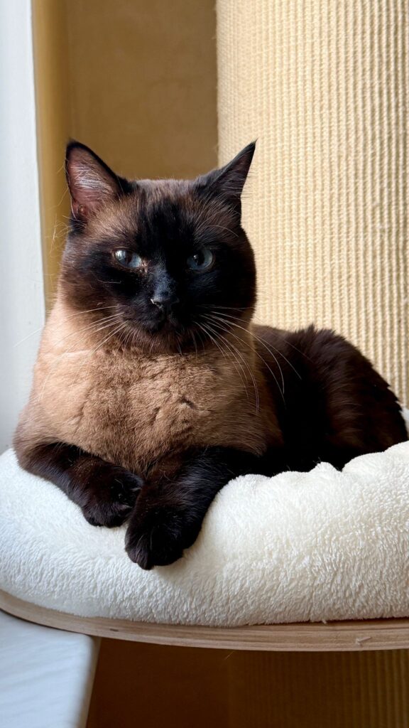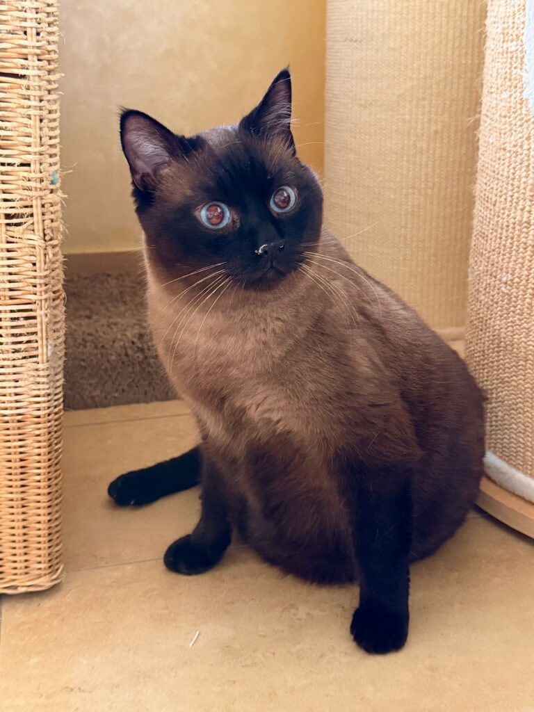 Charly ist ein beeindruckender Siamkater aus dem Tierschutz, der leider sein Zuhause verlor, da sein Frauchen mit 93 Jahren mit der Pflege überfordert war. Bei uns angekommen, zeigt sich der siebenjährige Kater als richtige „Wuchtbrumme“ mit einem Herz aus Gold.
