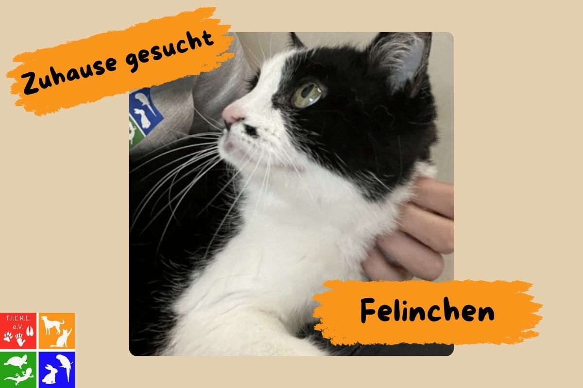 Felinchen, eine liebevolle 15-jährige Katzendame mit einem kleinen Handicap, sucht dringend ein ruhiges und warmes Plätzchen, an dem sie ihren Lebensabend in Geborgenheit verbringen darf.