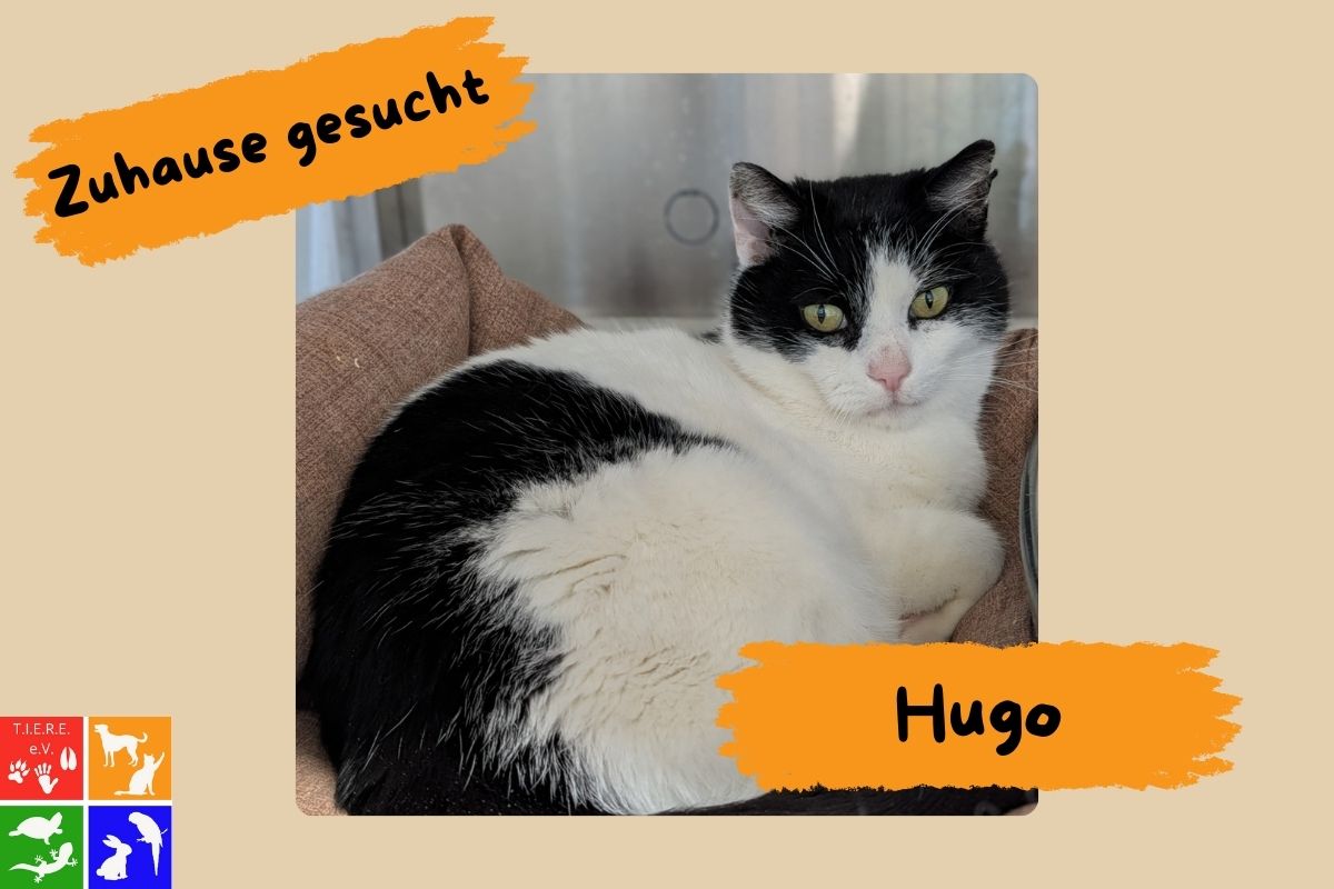 Hugo ist ein etwa sechsjähriger, ruhiger und zutiefst liebevoller Kater, der mit sanften Gesten statt lauter Forderungen die Herzen gewinnt.