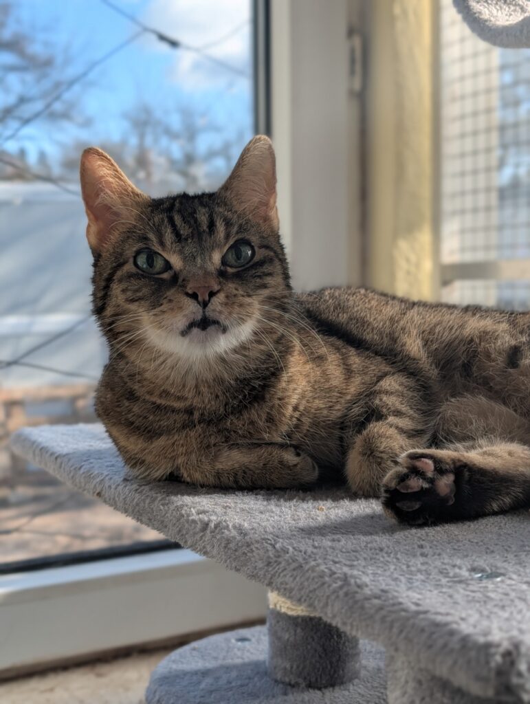 - Besonderheiten: Sehr menschenbezogen und freundlich, sucht ruhiges Zuhause ohne kleine Kinder, freut sich über einen katzensicheren Balkon