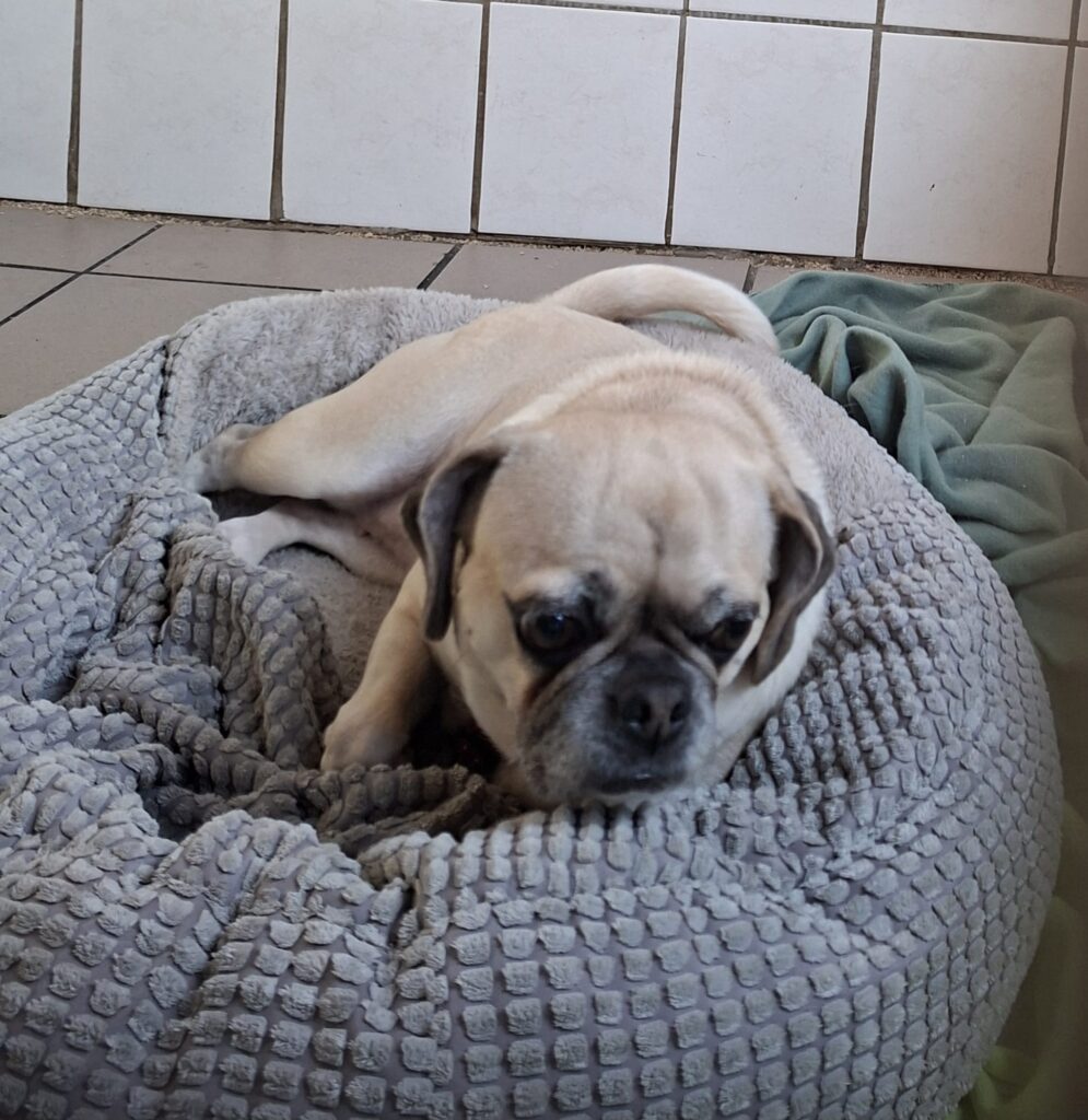 Da Pepper ein Mops ist, bringt sie rassetypische Merkmale mit, die häufig gesundheitliche Einschränkungen bedeuten. Wir suchen daher Menschen, die bereit sind, diese Verantwortung mitzutragen und Pepper ein liebevolles, würdevolles Leben zu bieten – trotz oder gerade wegen ihrer Besonderheiten.